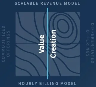 The Agency Model Map™ is a directional tool we use to help agency leaders understand where their business currently stands in the evolution of value — how effectively they create it, and how successfully they capture it.