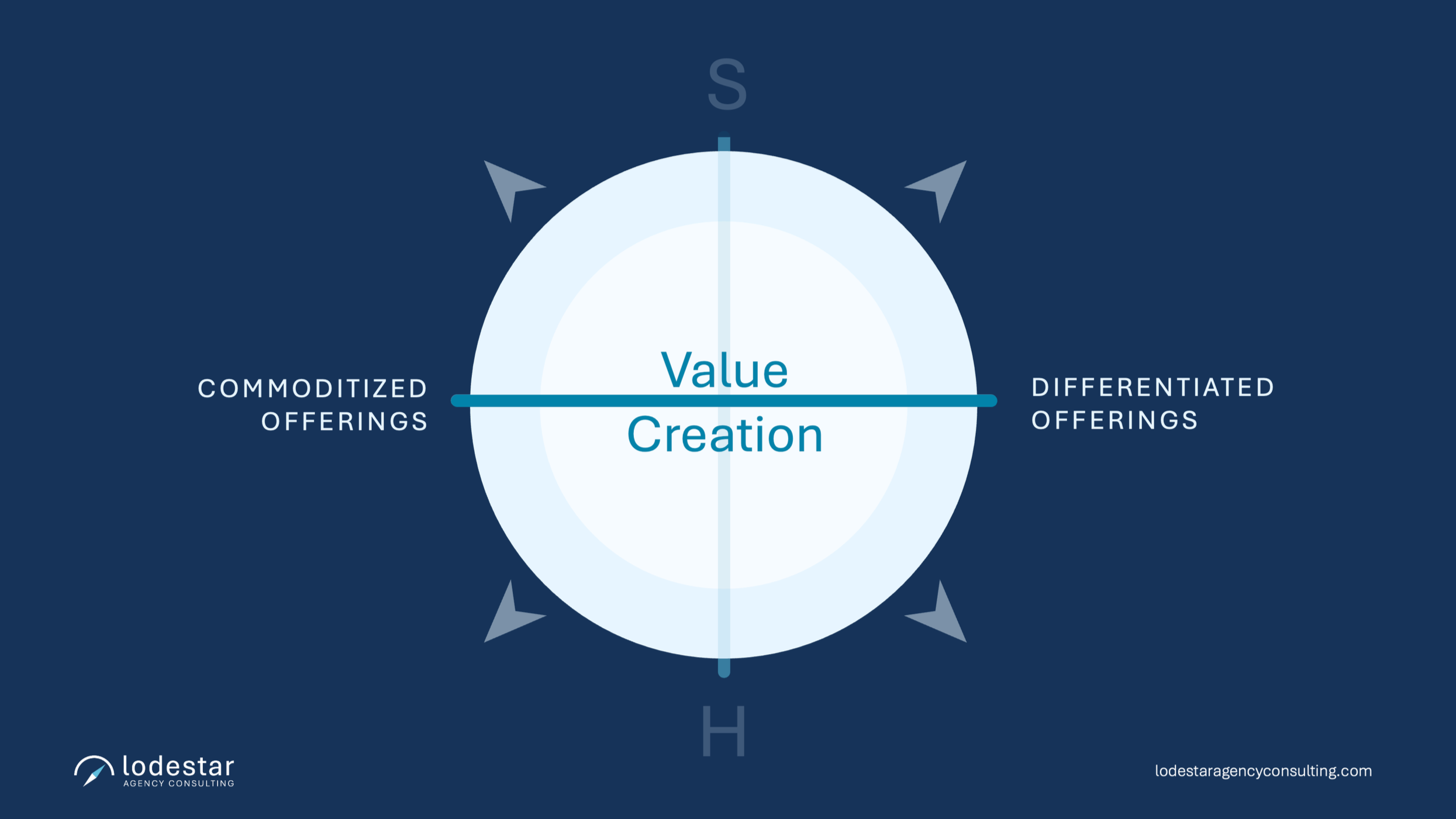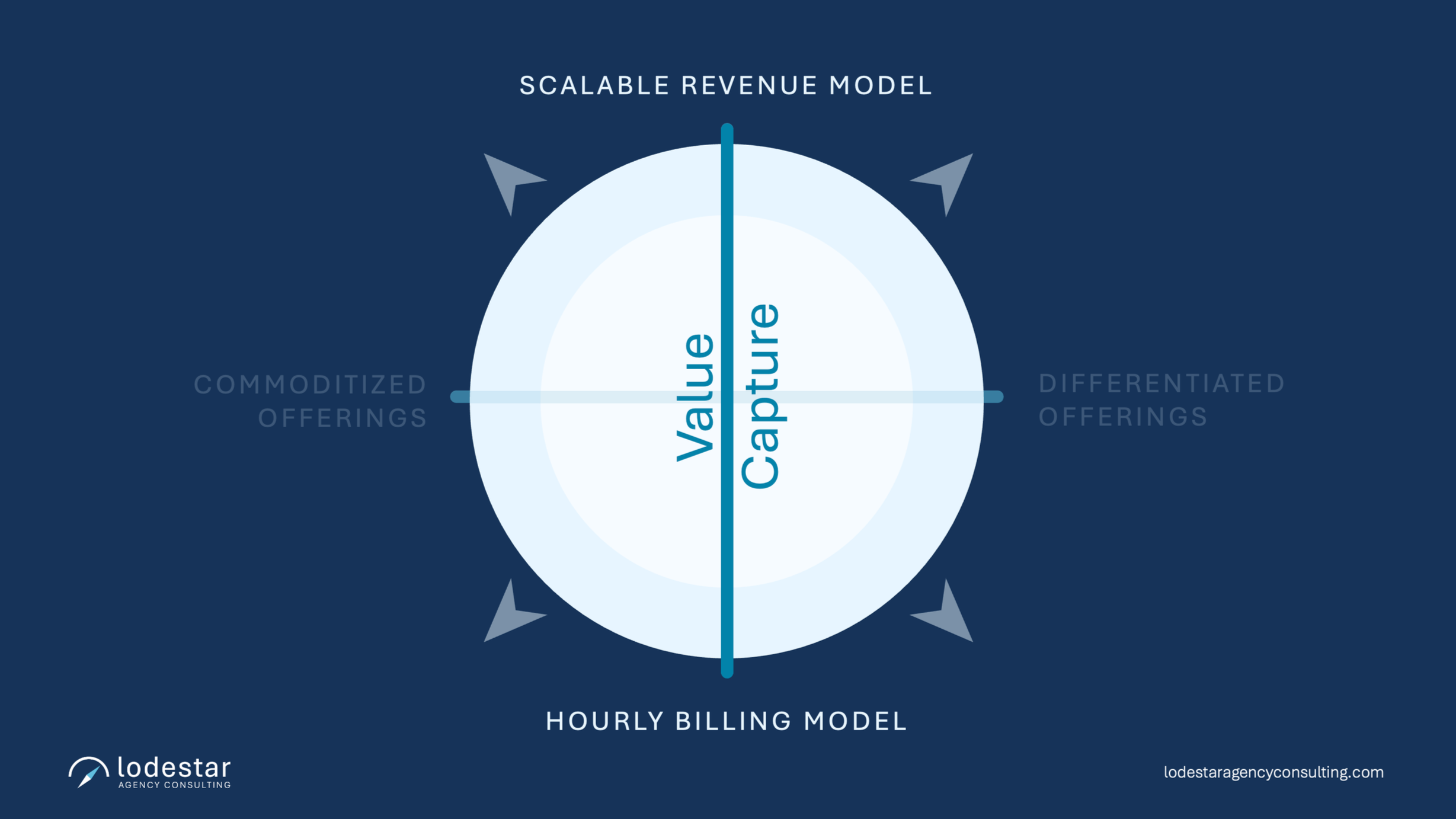 The Agency Value Compass™ is a directional tool we use to help agency leaders understand where their business currently stands in the evolution of value — how effectively they create it, and how successfully they capture it.